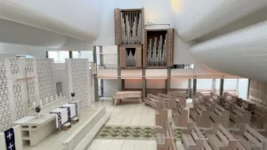 As someone who loves modernism, its rich sleekness and functionality, I see no reason why such things cannot be included in a new church building. Of course costs come into it. But just as with a marriage retreat or paid supervision, perhaps we ought to see such costs as investments.