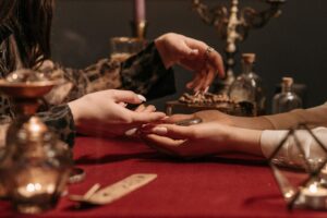 So people are returning to spells. Old spells. They’re turning to familiars and familiar-style, garden variety spells that are replete with rosemary and garlic and hexagonal shaped thingies. Suited businessmen and MBA-educated women alike are turning to manifesting, potions and tarot. . So check this out: