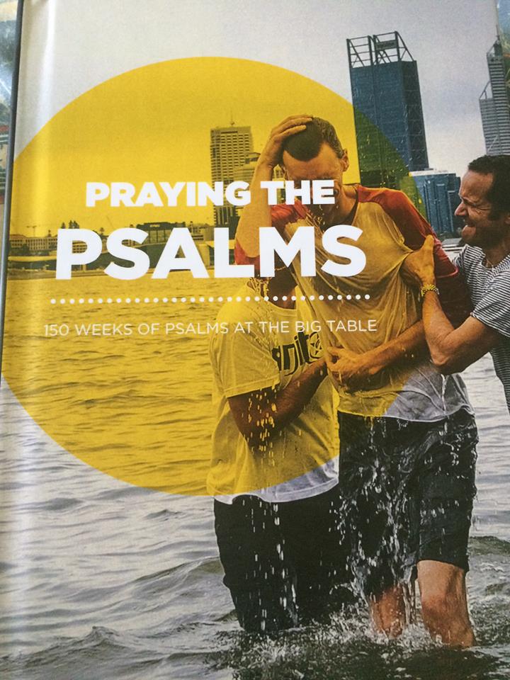 Which makes Praying the Psalms: 150 weeks of Psalms at the Big Table, a pleasant interlude among them all.  Praying the Psalms (hereafter PTP), is a book by a church.  And it’s not primarily about the church, but what the God of the church is doing among one particular expression of church here in Western Australia, but with application far wider than that.  The front cover has Perth’s CBD in the background – where real power in WA lies apparently – with a baptism underway in the foreground – where God’s power lies actually!